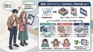 暮らし BTS「ARIRANG」は何が違う?形態が多すぎて分からない人向けにやさしく解説 理由 BTSのアルバム「ARIRANG」は、発売情報を見た瞬間に「形態が多すぎて分からない」と感じる人がとても多い作品です。説明文を読んでも専門用語や特典内容が並び、何が違って何を選べばいいのか、余計に混乱してしまうことも少なくありません。しかし... 暮らし