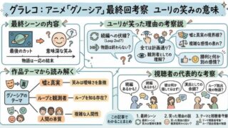 暮らし アニメ「グノーシア」最終回のユーリの笑みの意味は?ラストシーンを徹底考察 アニメ「グノーシア」の最終回を見た人の中には、ラストシーンでユーリが見せた意味深な笑みに疑問を感じた方も多いのではないでしょうか。物語は一応の結末を迎えたように見えるものの、最後のユーリの表情によって「本当にこれで終わりなのか?」と感じた視... 暮らし