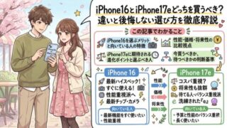 IT iPhone16とiPhone17eどっちを買うべき?違いと後悔しない選び方を徹底解説 スマホ選びで後悔したくない方へ。iPhone16とiPhone17eはどちらも魅力的なモデルだからこそ、「結局どっちがいいの?」と迷ってしまいますよね。本記事では、それぞれの強み・向いている人の特徴・後悔しない判断基準をわかりやすく整理しま... IT