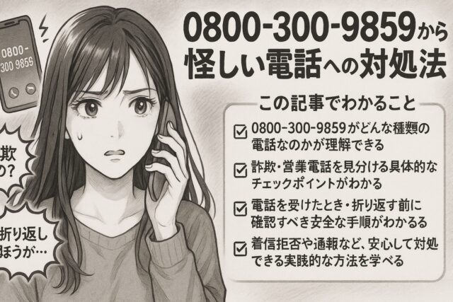 本記事では、「0800-300-9859」の正体を調べつつ、安全に対処するためのポイントを詳しく解説します。