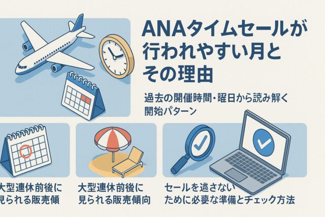 ANAの国内線タイムセールは、旅行をお得に楽しみたい人にとって大きなチャンスですが、「次はいつ開催されるの?」という疑問を抱える方も多いはずです。公式に日時が予告されないため、気づいたときには終了していた…という経験をした人も少なくありません。しかし実は、過去の開催データを丁寧に読み解くことで、セールが行われやすい時期や開始タイミングの“傾向”が見えてきます。本記事では、ANAがセールを行う背景や過去のパターンをもとに、次回開催の予想に役立つポイントをわかりやすく整理しました。さらに、セールを確実にキャッチしてお得に購入するための準備方法も詳しく解説します。旅行計画を賢く組み立てるための知識として、ぜひ最後まで参考にしてみてください。