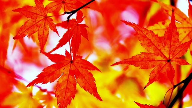 朝9時〜10時頃は、柔らかい朝日が差し込み、紅葉の葉が一層鮮やかに見えます。