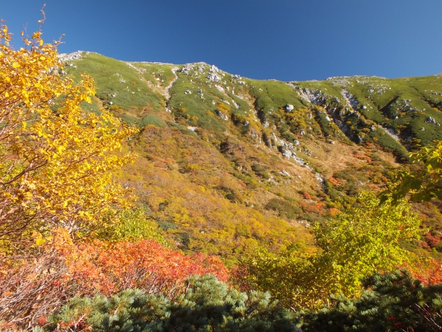 昼間 | 青空と紅葉の鮮やかなコントラスト |