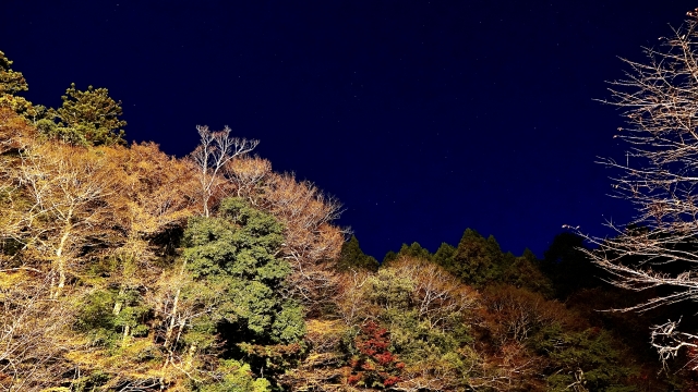 幻想的に浮かび上がる紅葉は、昼間とはまた違った魅力を見せてくれます。