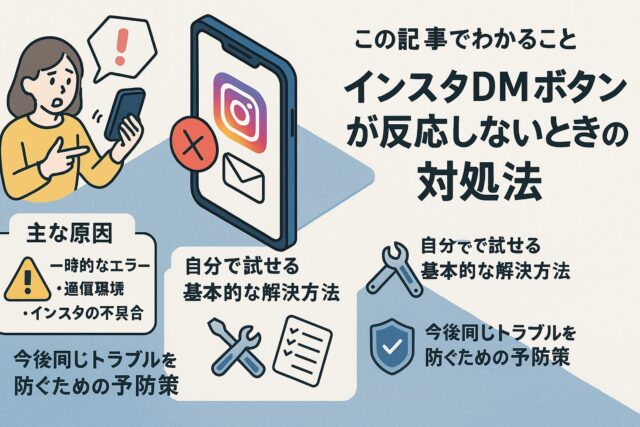 「インスタのDMボタンを押しても反応しない」「メッセージを開こうとしても何も起こらない」――そんな経験をしたことはありませんか?