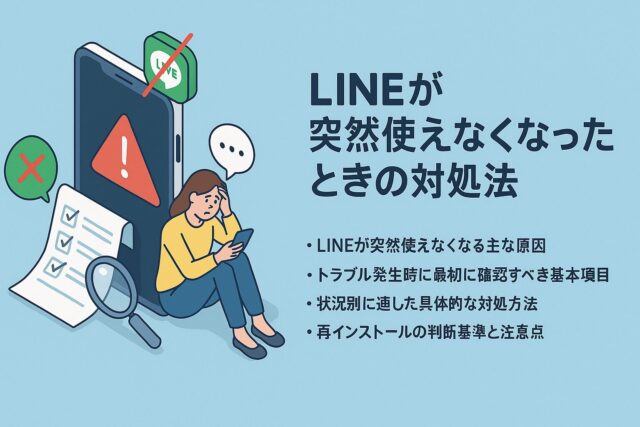 - LINEが突然使えなくなる原因は複数あり、落ち着いて切り分けることが重要