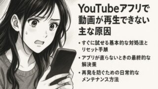 IT YouTubeアプリで動画が再生できない原因と対処法 YouTubeを開いて動画を再生しようとした際に、「問題が発生しました」「やり直すにはタップしてください」というメッセージが表示され、何度試しても動画が見られない──そんな経験をした方は少なくありません。ブラウザでは再生できるのにアプリだけ... IT