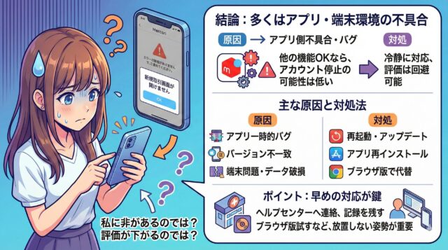 - メルカリで新規取引画面だけが開けなくなる主な原因