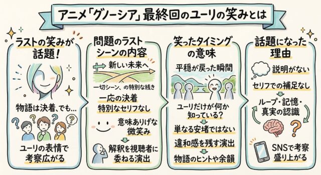 この記事では、最終回のラストシーンを整理しながら、ユーリの笑みについて考えられている代表的な考察をわかりやすく解説していきます。