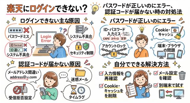 ここでは、楽天にログインできない場合によくある原因を整理し、なぜパスワードが合っているはずなのにエラーが表示されるのかを分かりやすく解説します。